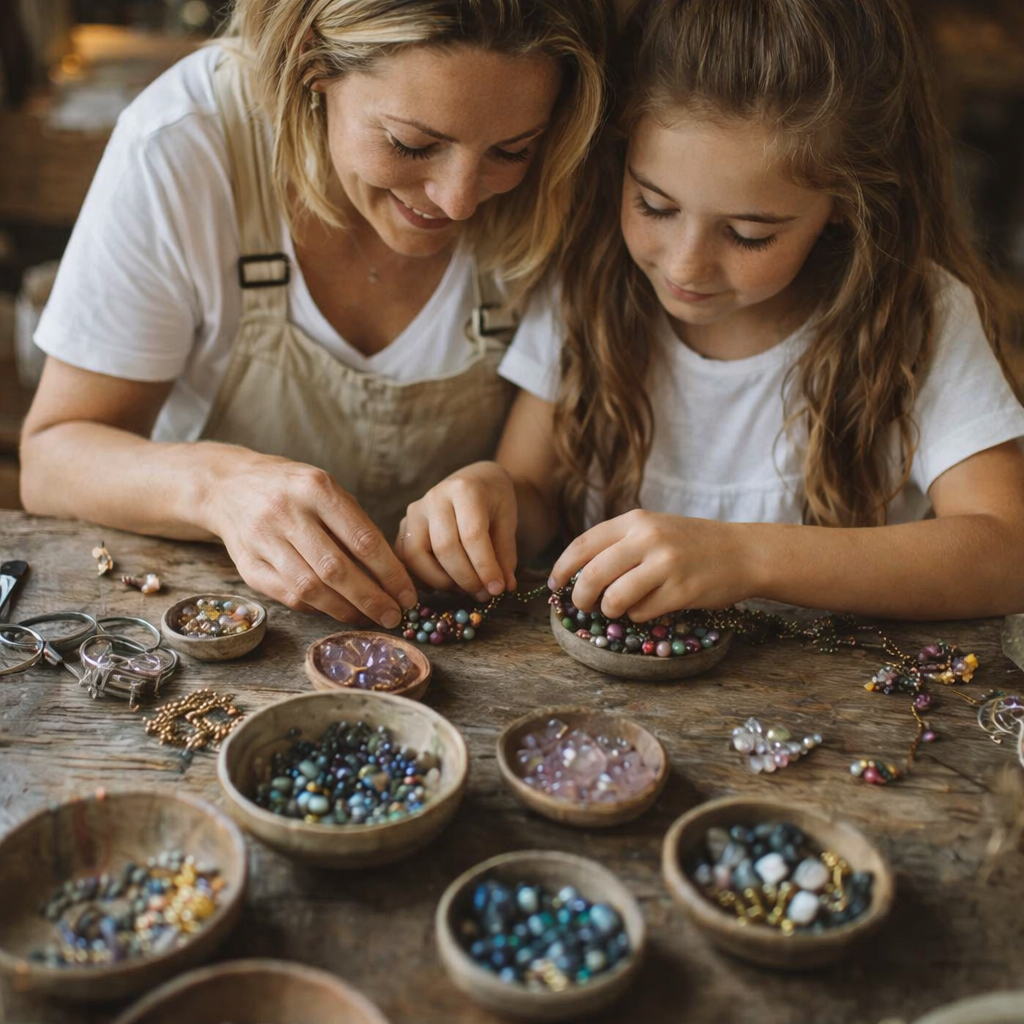 Every piece is created at our family table—handcrafted and finished with care and love. Slow, intentional, and made with true attention to detail. What begins with a grandmother’s hands and a child’s curiosity becomes timeless jewellery, designed to carry meaning.