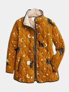 Eira | Casual Black Cat Halloween Print Quilted Jacket
