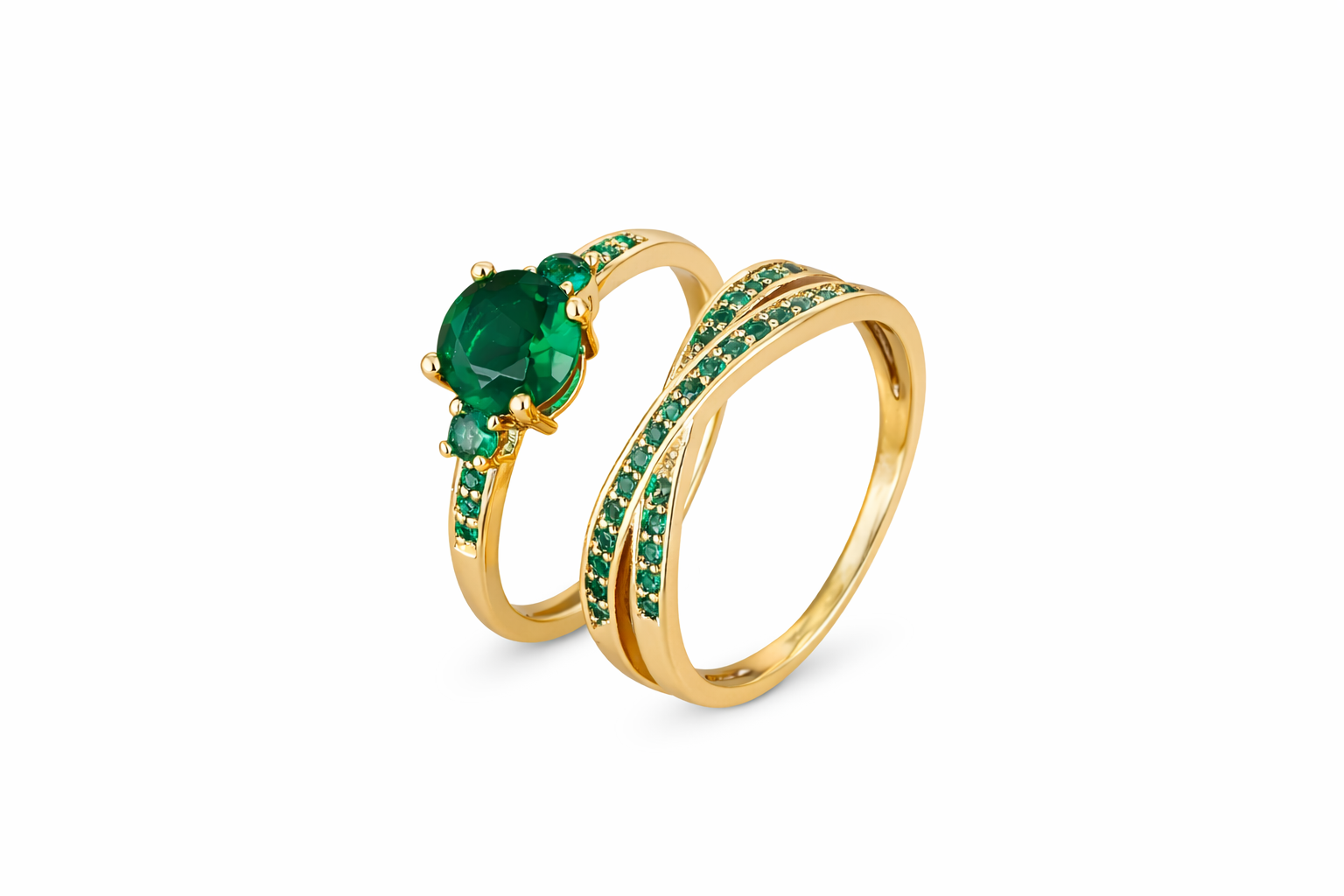 Exclusive Gold Ring Set with Green Crystals