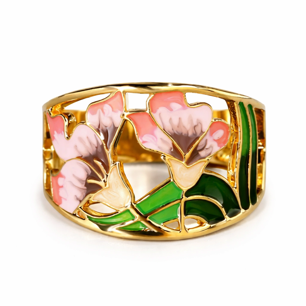 Chic Floral Gold Enamel Ring