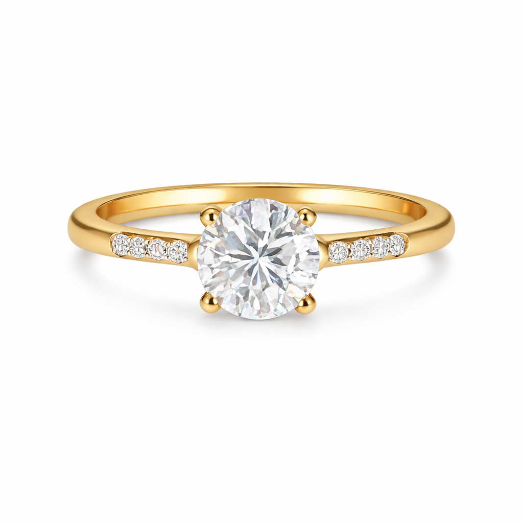 Gold-Plated Solitaire Crystal Engagement Ring – Ciara Boutique