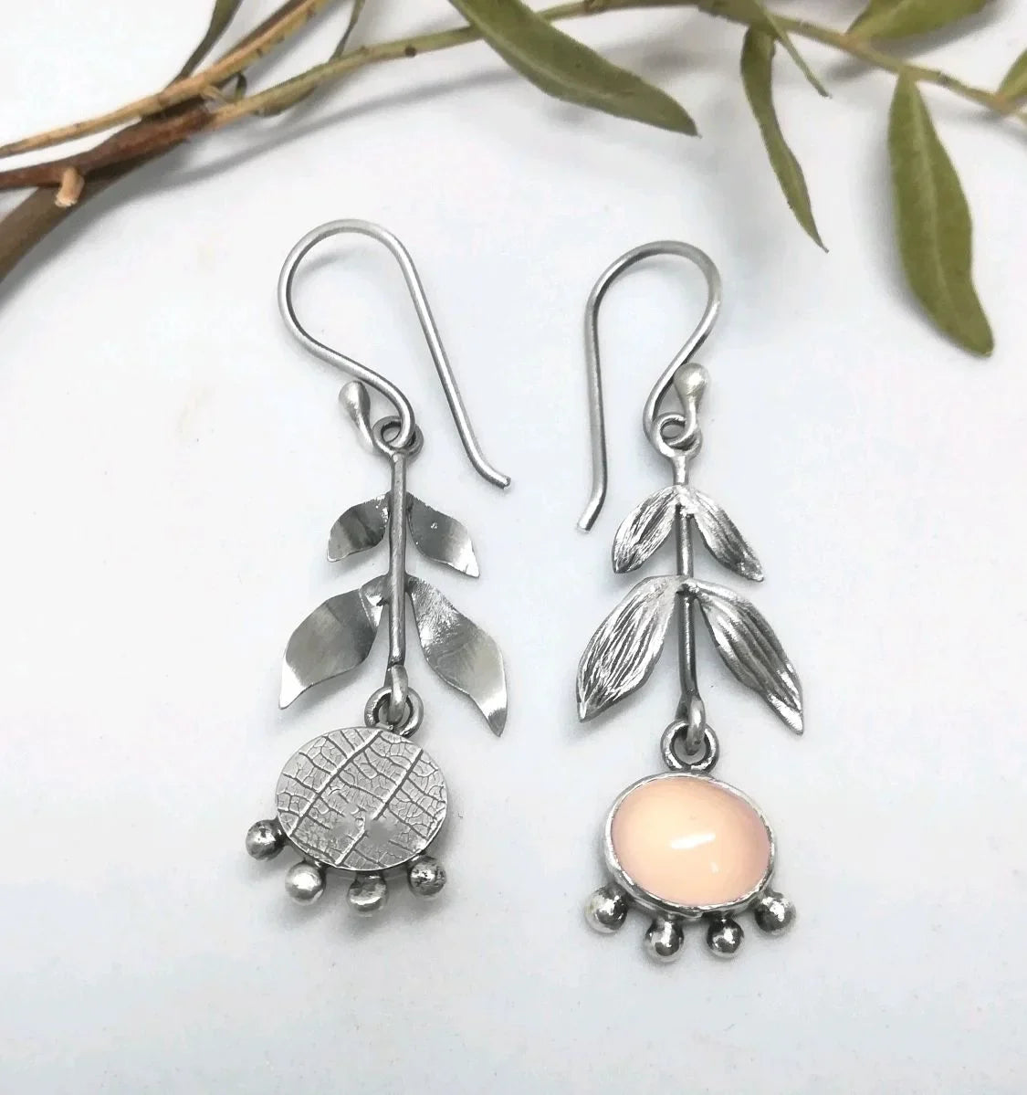 Silver Leafy Rose Quartz Drop Earrings – Ciara Boutique